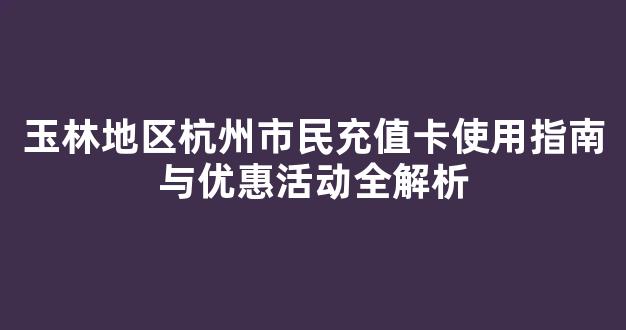 玉林地区杭州市民充值卡使用指南与优惠活动全解析