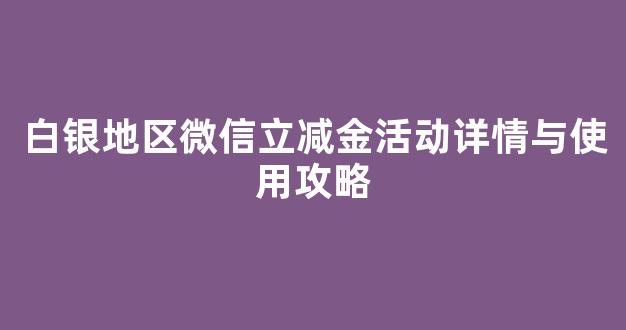 微信立减金活动是近年来微信推出的一个非常受欢迎的优惠活动。白银地区的用户也可以参加这个活动,享受微信平台上的各种优惠。本文将为大家详细介绍白银地区微信立减金活动的具体内容和使用攻略,包括如何领取、使用方式以及如何最大化优惠,帮助你在使用微信时节省更多开支。