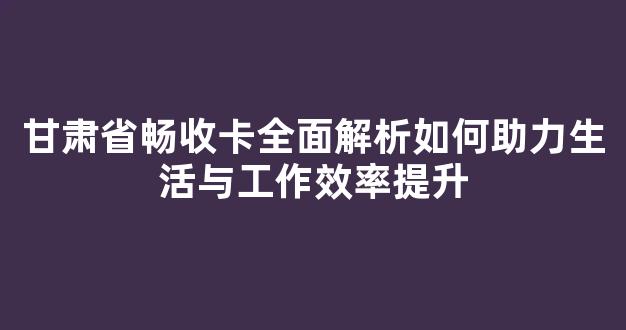 甘肃省畅收卡全面解析如何助力生活与工作效率提升