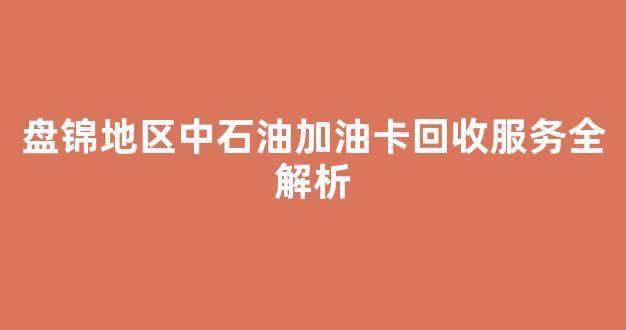 盘锦地区中石油加油卡回收服务全解析