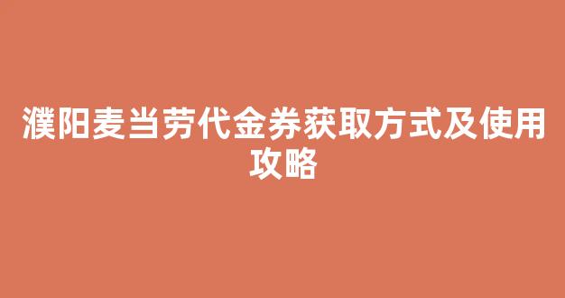 濮阳麦当劳代金券获取方式及使用攻略