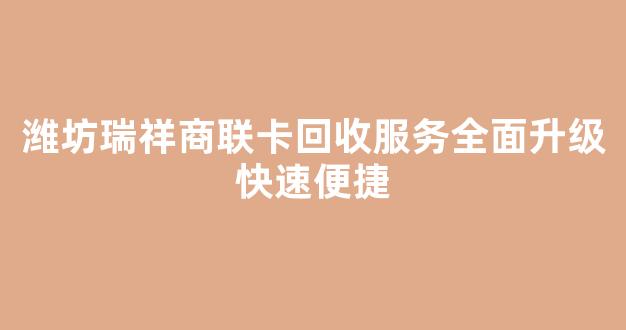 潍坊瑞祥商联卡回收服务全面升级,快速便捷