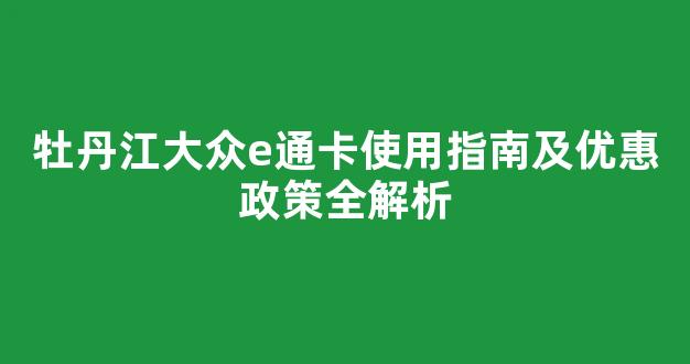 牡丹江大众e通卡使用指南及优惠政策全解析