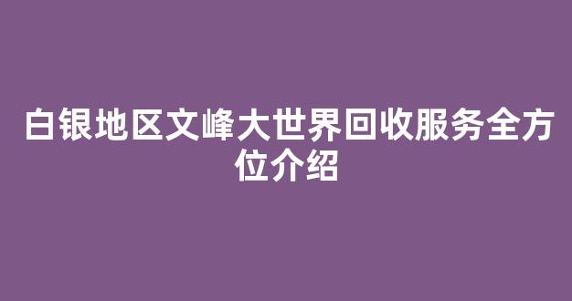 在白银地区,文峰大世界提供全方位的回收服务,致力于为居民、商户和企业提供便捷、高效的资源回收方案。无论是家庭用品、电器产品,还是废旧金属、塑料等物品,文峰大世界的回收服务都能满足不同用户的需求,帮助大家减少浪费,保护环境。此外,文峰大世界还提供专业的咨询服务,让用户更好地了解回收过程,确保每一项回收工作都能顺利完成。在本文中,我们将详细介绍白银地区文峰大世界回收服务的各个方面,以及如何通过可靠的回收平台获得更加便捷的回收体验。