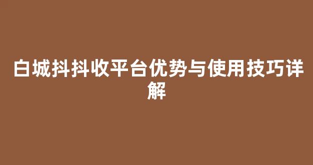 白城抖抖收平台优势与使用技巧详解