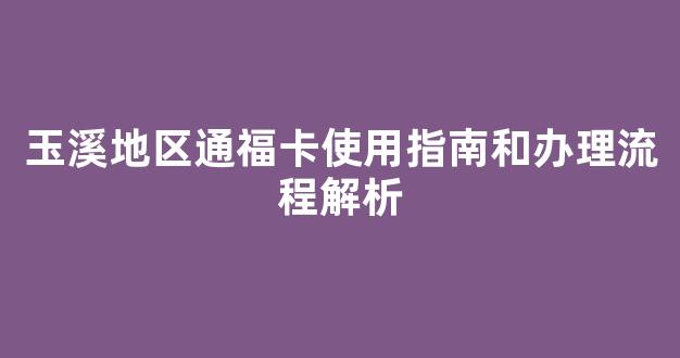 玉溪地区通福卡使用指南和办理流程解析