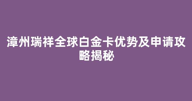 漳州瑞祥全球白金卡优势及申请攻略揭秘