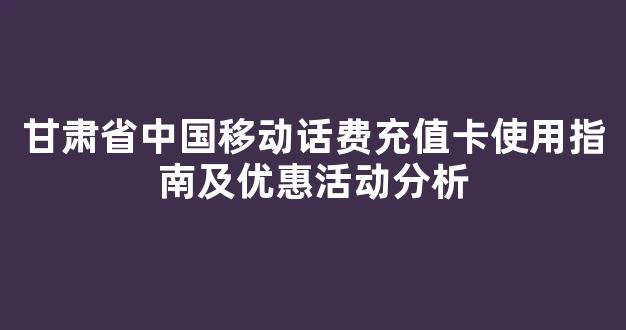 甘肃省中国移动话费充值卡使用指南及优惠活动分析