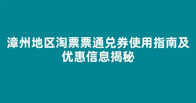 漳州地区淘票票通兑券使用指南及优惠信息揭秘