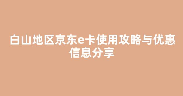 京东e卡是一种方便快捷的消费卡,可以在京东平台上用来购买商品。对于白山地区的消费者来说,京东e卡不仅能帮助节省购物开支,还可以享受更多优惠活动。本文将详细介绍京东e卡的使用方法、优惠信息以及回收平台的推荐,帮助大家更好地利用这张卡,享受购物乐趣。