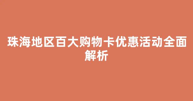 珠海地区百大购物卡优惠活动全面解析