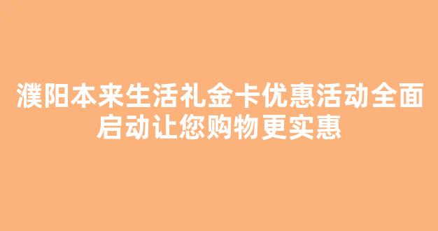 濮阳本来生活礼金卡优惠活动全面启动让您购物更实惠