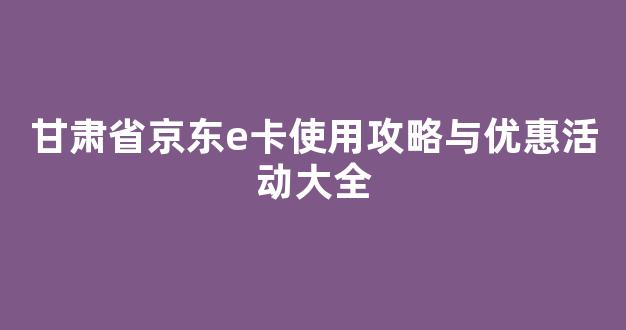 甘肃省京东e卡使用攻略与优惠活动大全