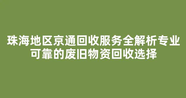 随着环保意识的逐渐提升,废旧物资的回收成为社会关注的重要问题之一。在珠海,越来越多的人开始关注废旧物资的回收,尤其是京通回收服务,它以其专业、可靠的特点,成为了许多人回收废旧物资的首选。然而,面对市场上众多回收服务,消费者在选择时可能会感到困惑。本文将详细介绍珠海地区京通回收服务的特点,以及如何选择一个可靠的废旧物资回收平台,帮助大家做出明智的选择。