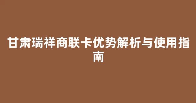 甘肃瑞祥商联卡优势解析与使用指南