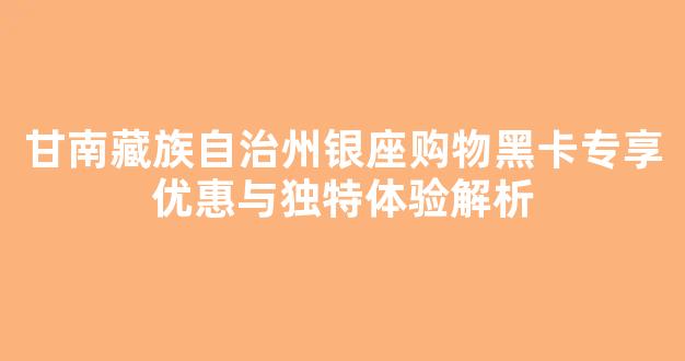 甘南藏族自治州银座购物黑卡专享优惠与独特体验解析