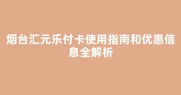 烟台汇元乐付卡使用指南和优惠信息全解析