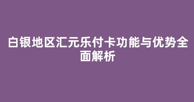 白银地区汇元乐付卡功能与优势全面解析