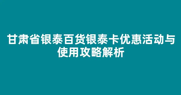 甘肃省银泰百货银泰卡优惠活动与使用攻略解析