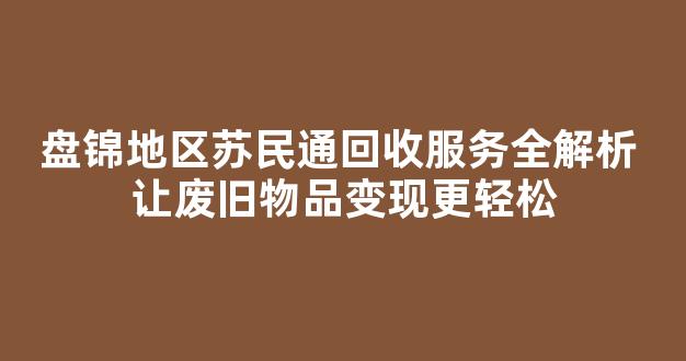 苏民通回收在盘锦地区有着良好的口碑,许多用户都给出高度评价。其优势体现在以下几个方面: