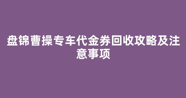 曹操专车代金券是一种非常实用的优惠工具,很多用户通过这类代金券能够享受到更加优惠的打车服务。但是,随着代金券的使用情况逐渐变化,很多人也会遇到代金券过期、无法使用或者不再需要的情况。为了避免浪费,很多用户选择将这些代金券进行回收。今天,我们将介绍盘锦曹操专车代金券回收的攻略以及注意事项,帮助大家更好地处理自己的代金券。