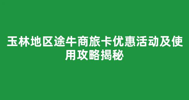 玉林地区途牛商旅卡优惠活动及使用攻略揭秘