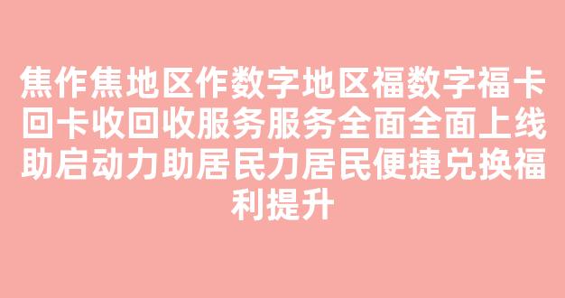 焦作焦地区数字福卡回收服务全面上线,助力居民便捷兑换福利