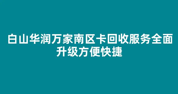 在如今的生活中,越来越多的消费者选择购买卡片产品,而这些卡片使用过后如何回收和处理也是大家关注的重点。为了方便广大消费者,白山华润万家南区在卡回收服务上进行全面升级,提供了更为便捷和高效的回收体验。通过这些新的服务,顾客可以更加轻松地处理过期、废弃或不再使用的卡片,帮助环保的同时还能享受到快速、简便的服务。
