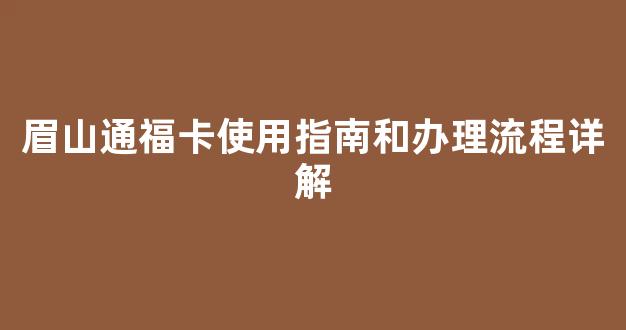 眉山通福卡使用指南和办理流程详解
