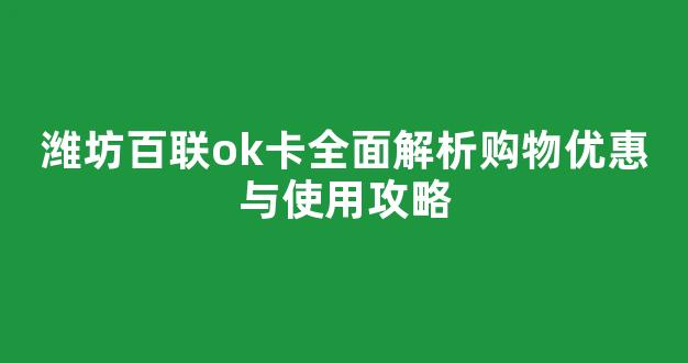 潍坊百联OK卡全面解析购物优惠与使用攻略